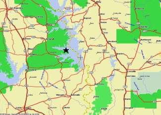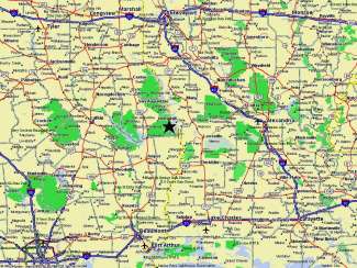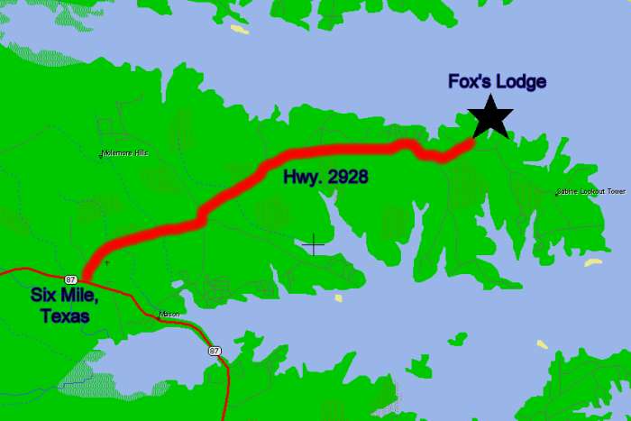 From Six Mile, Texas (Junction Highway 87 and Highway 2928 - 10 miles South of Hemphill, TX on Highway 87 - Detail map at left)