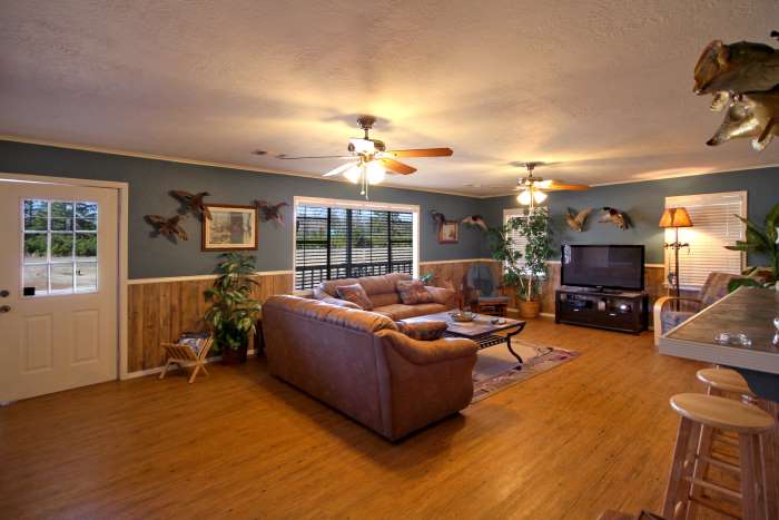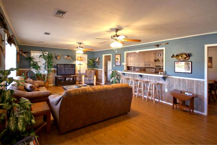 | The Great Room provides plenty of room to lounge - or to get comfortable while you watch the Big Game on Big Screen TV. You may even want to start your morning here at the breakfast bar with a wake-up cup of coffee before a tasty breakfast. | ||||