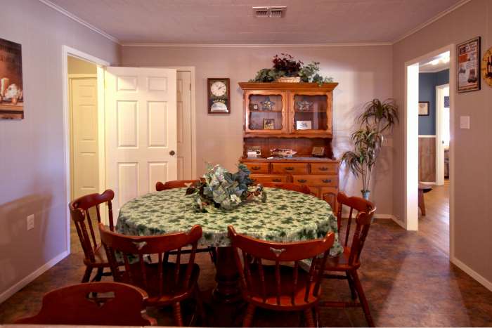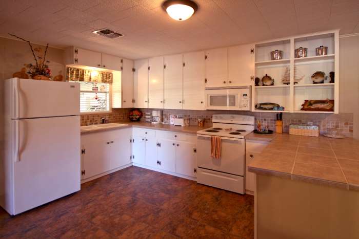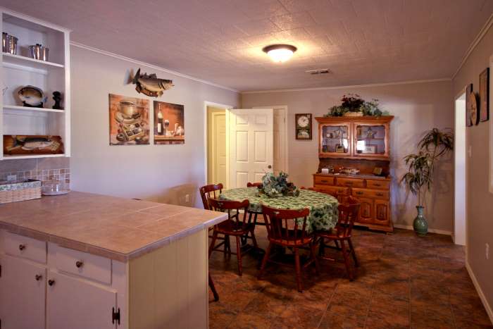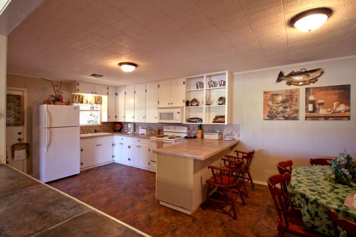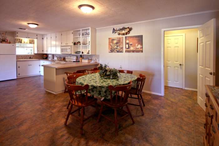 Kitchen and DiningThe dining area opens into the roomy kitchen. With loads of counter-top even several cooks won't get jammed up fixing a feast. And, between the dining table, breakfast bar and the snack bar separating the kitchen and dining areas there is plenty of room for the largest groups to all eat comfortably at once. |