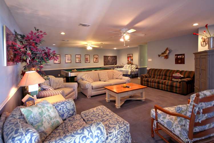 | The huge lower living area provides another great place for relaxing and opens onto the Lower Deck. You'll enjoy a few games of pool on the excellent table here, too! | |||||||